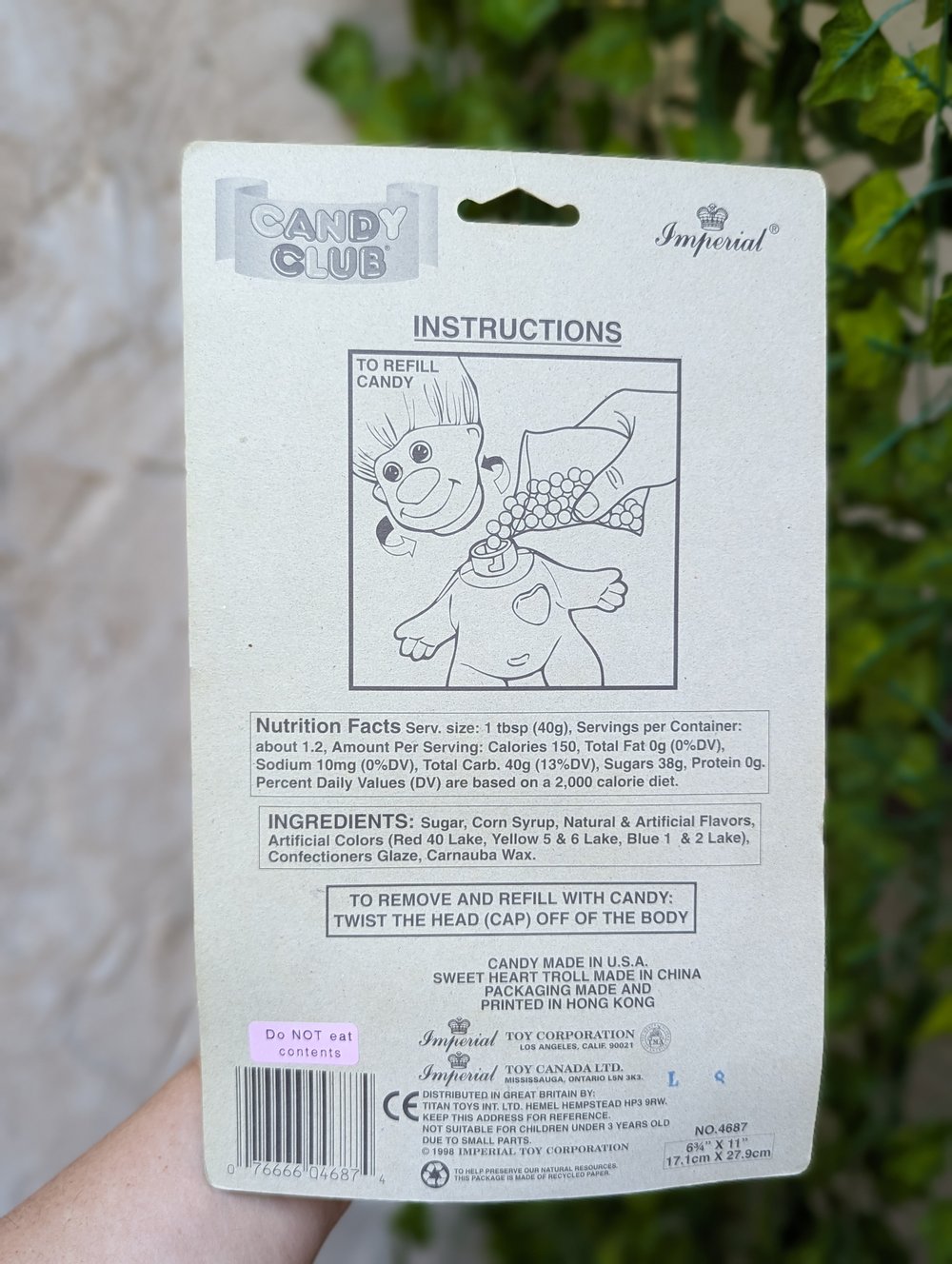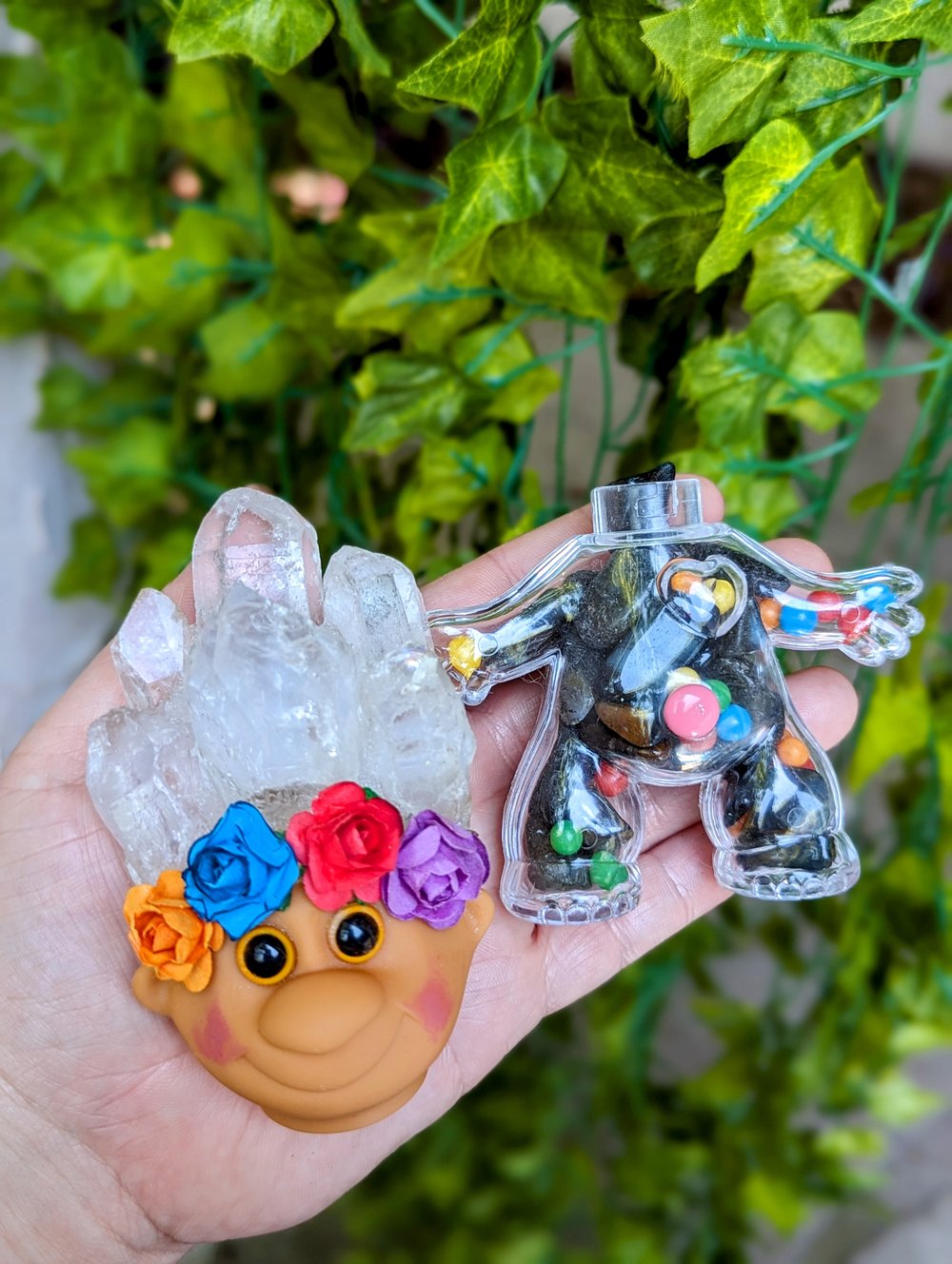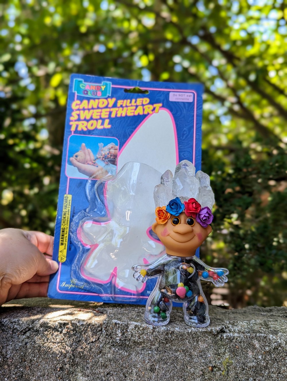 THIS is the coolest. Fill up your Sweetheart Troll (see the little heart on the Troll's chest?) with whatever you want inside - the head screws off and on. I currently have filled it with Tiger's Eye and Labradorite gems (plus a little bit of the original hard candy - DO NOT EAT). But you can put whatever: notes, flowers, sand art, paperclips, the possibilities are endless!