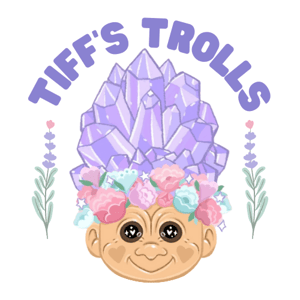 These bears are actual troll dolls from the 80s and are super rare. I gave them a crystal makeover and now they are even more special. See my reel to view them in action. And if you look closely you'll see iridescent accents on their faces that shimmer when it catches the light.